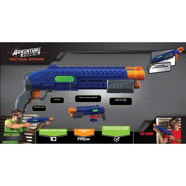 Adventure Force Tactical Strike Liberator Ball Blaster có kích thước 7,5 "H x 20,5" L x 2 "D và bao gồm 10 viên ball Tactical Strike tương thích với tất cả các dòng ball tròn Tactical Strike & Nerf Rival Blaster tiêu chuẩn nhất.